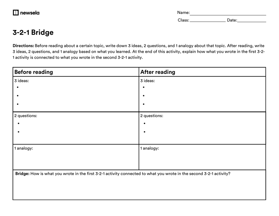 Bridge: How is what you wrote in the first 3-2-1 activity connected to what you wrote in the second 3-2-1 activity?