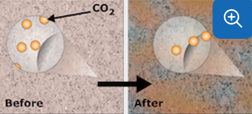 Carbonation | arrow_right_alt | a rock that contains the mineral magnesium carbonate dissolves in the presence of carbonic acid. |