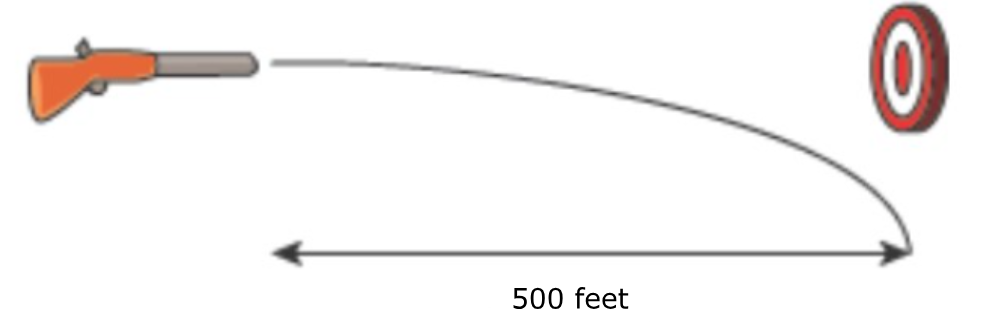 In this example, a projectile is fired from a model rifle at a velocity (speed) of 750 ft/sec.