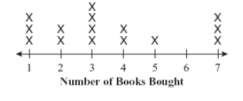 The line plot display the number of books that a 3rd gradeclass bought at the book fair. Select 2 histograms that display the same information as theline plot below. Ech "x" represents one student.