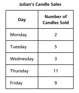 The table provided shows the number of candles Julian sold each day for five days.