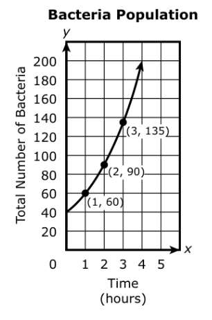 What is the average rate of change of the bacteria population over the interval x = 1 to x = 3?