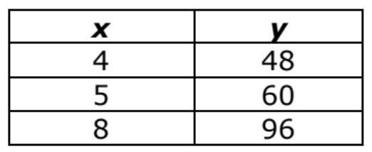 Find the constant of proportionality (k). Using the value for k, write an equation in the form of y = kx.
