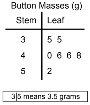 The stem and leaf plot shows the masses of some buttons.