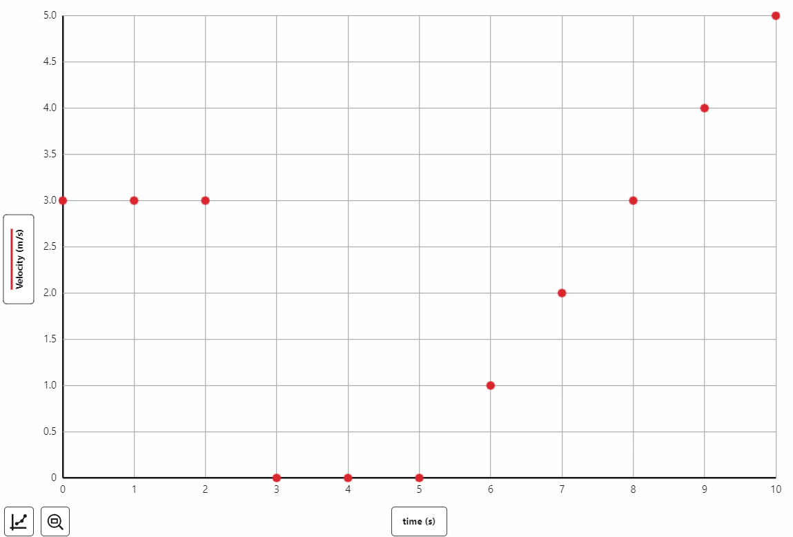 What did the object whose motion is graphed to the left do between 2 and 3 seconds on the graph?