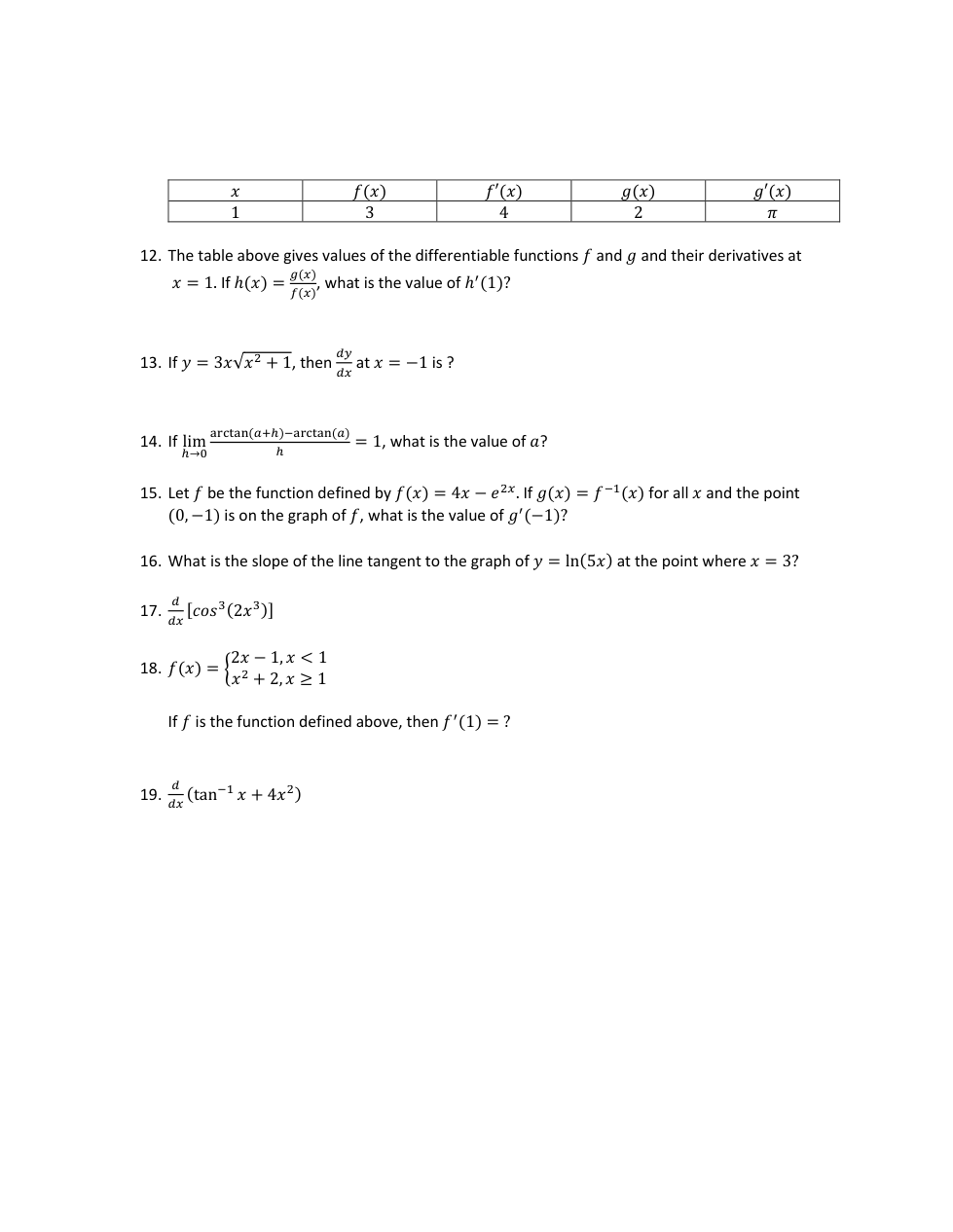 Derivatives Review