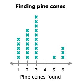 After a scavenger hunt, a team counted the number of pine cones found by each of its members.