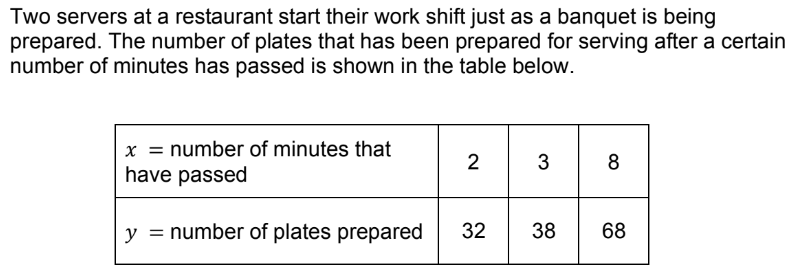 Use the slope and y-intercept of the graph in question #1 to write an equation of the line in slope intercept form. Let y = the number of plates and x = the number of minutes.