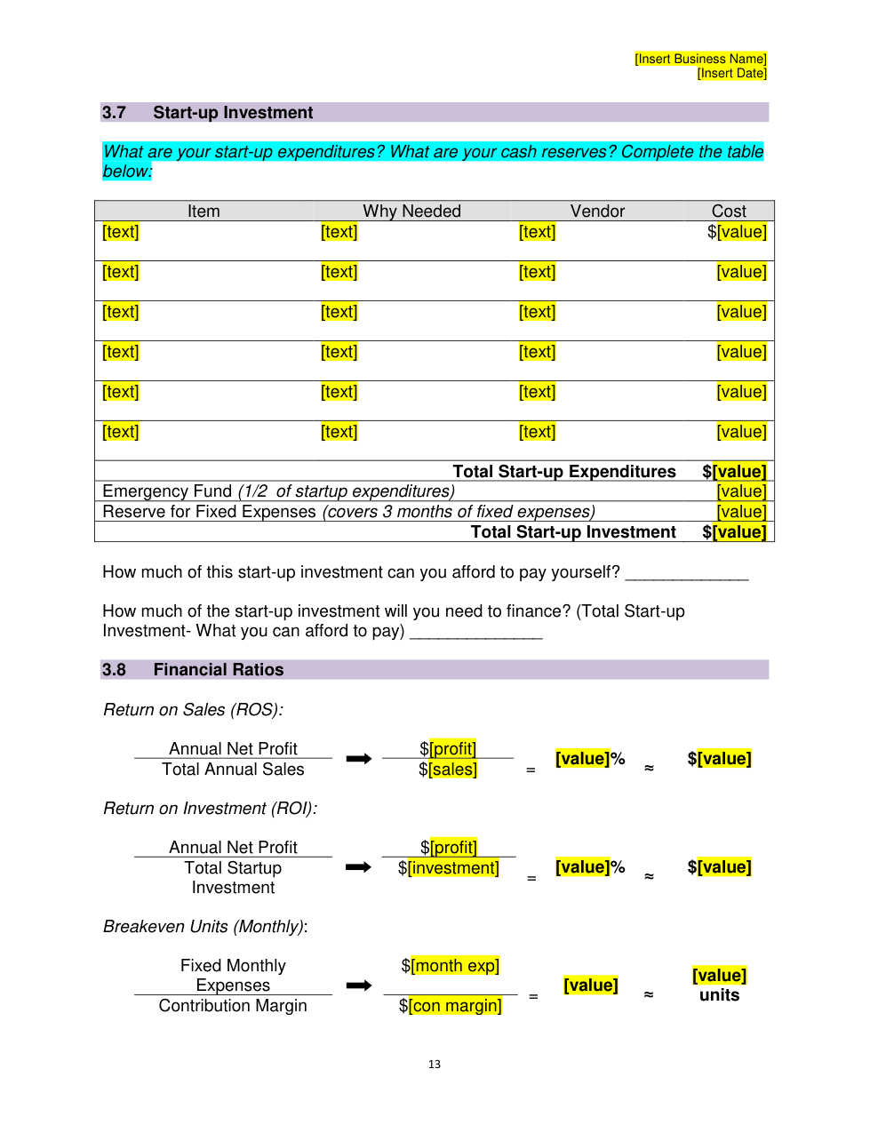 Annual Net Profit $[profit]= [value]% ≈ $[value] Total Startup Investment