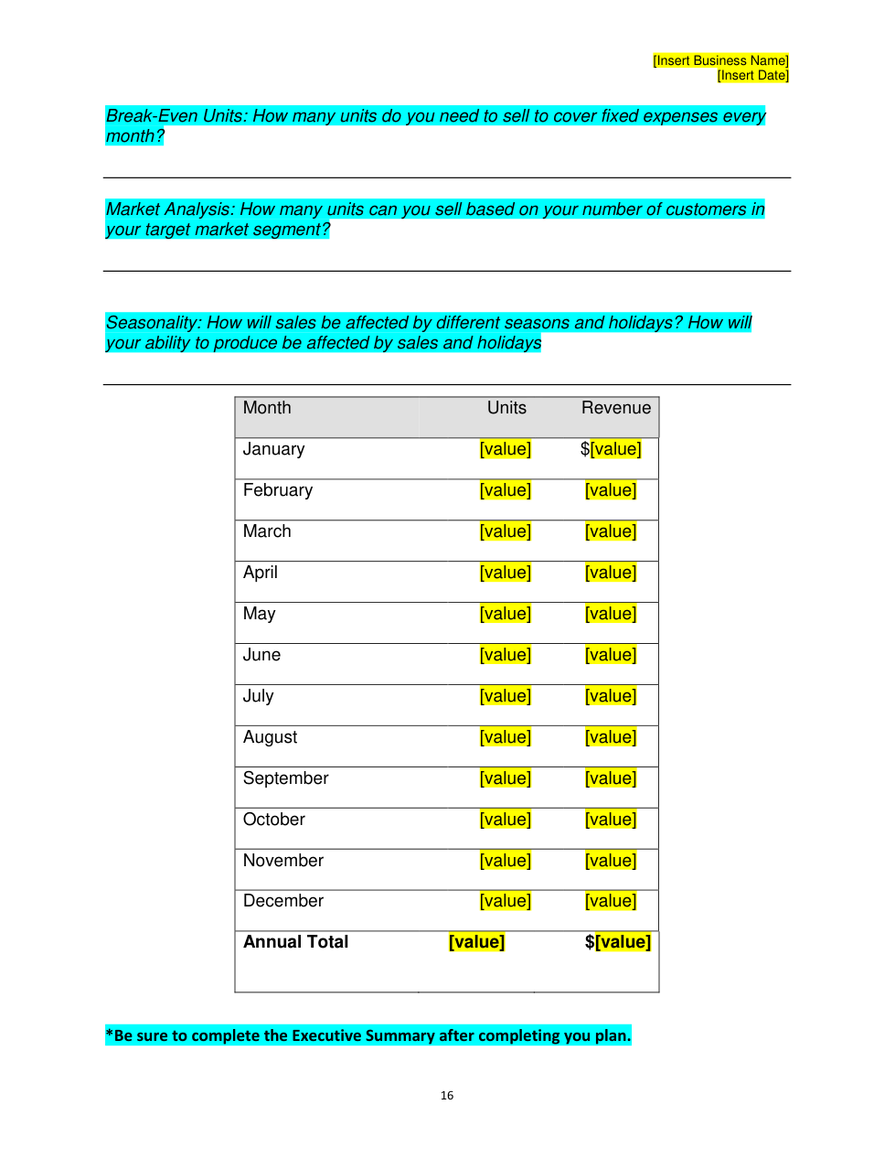 Seasonality: How will sales be affected by different seasons and holidays? How will your ability to produce be affected by sales and holidays?