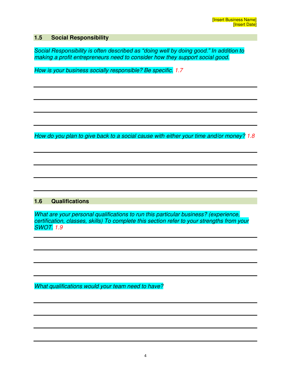 (1.6) Qualifications What are your personal qualifications to run this particular business? (experience, certification, classes, skills) To complete this section refer to your strengths from your SWOT.