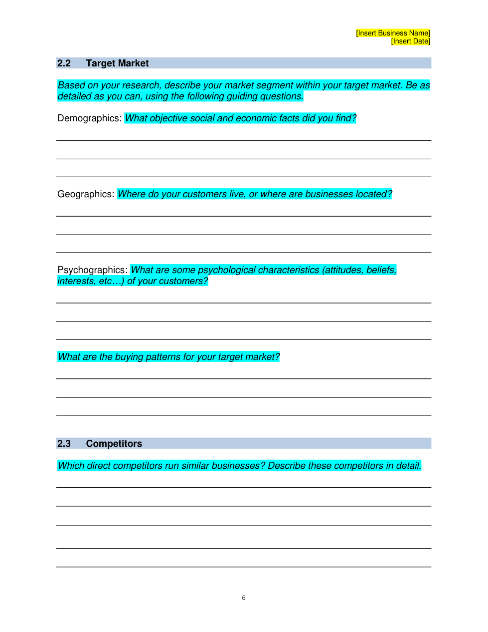 Based on your research, describe your market segment within your target market. Be as detailed as you can, using the following guiding questions.