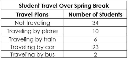 The school has a total of 2000 students. Around how many students would be expected to travel by car over spring break?