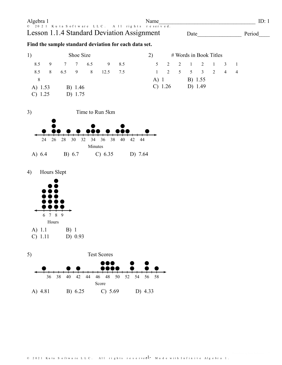 Lesson 1.1.4 Standard Deviation Variance
