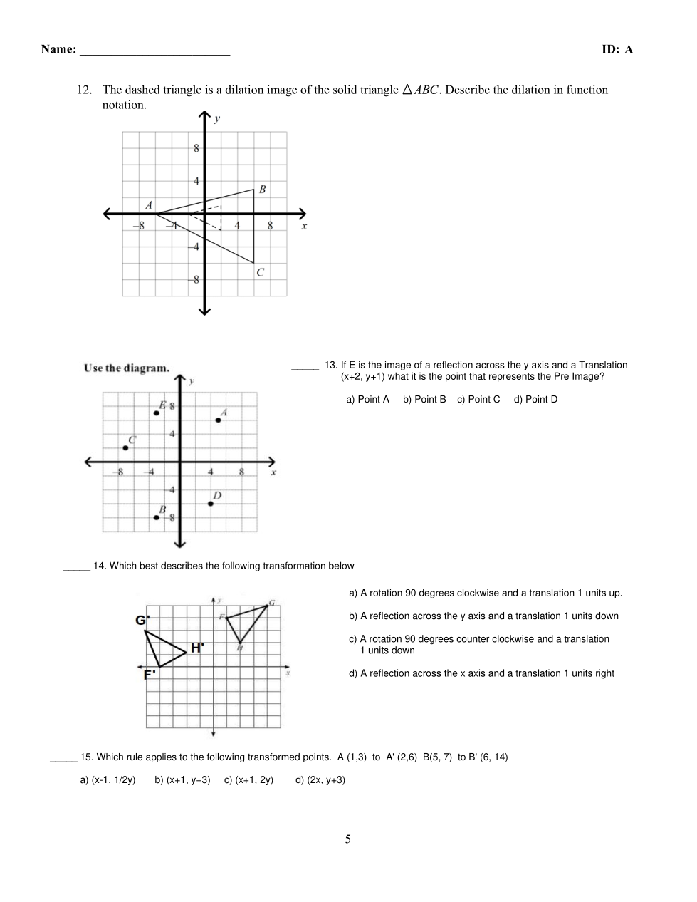 What is the scale factor that dilates points A(3,1) B(2,5) C(0,2) into A'(4.5, 1.5) B'(3,7.5) C'(0,3)