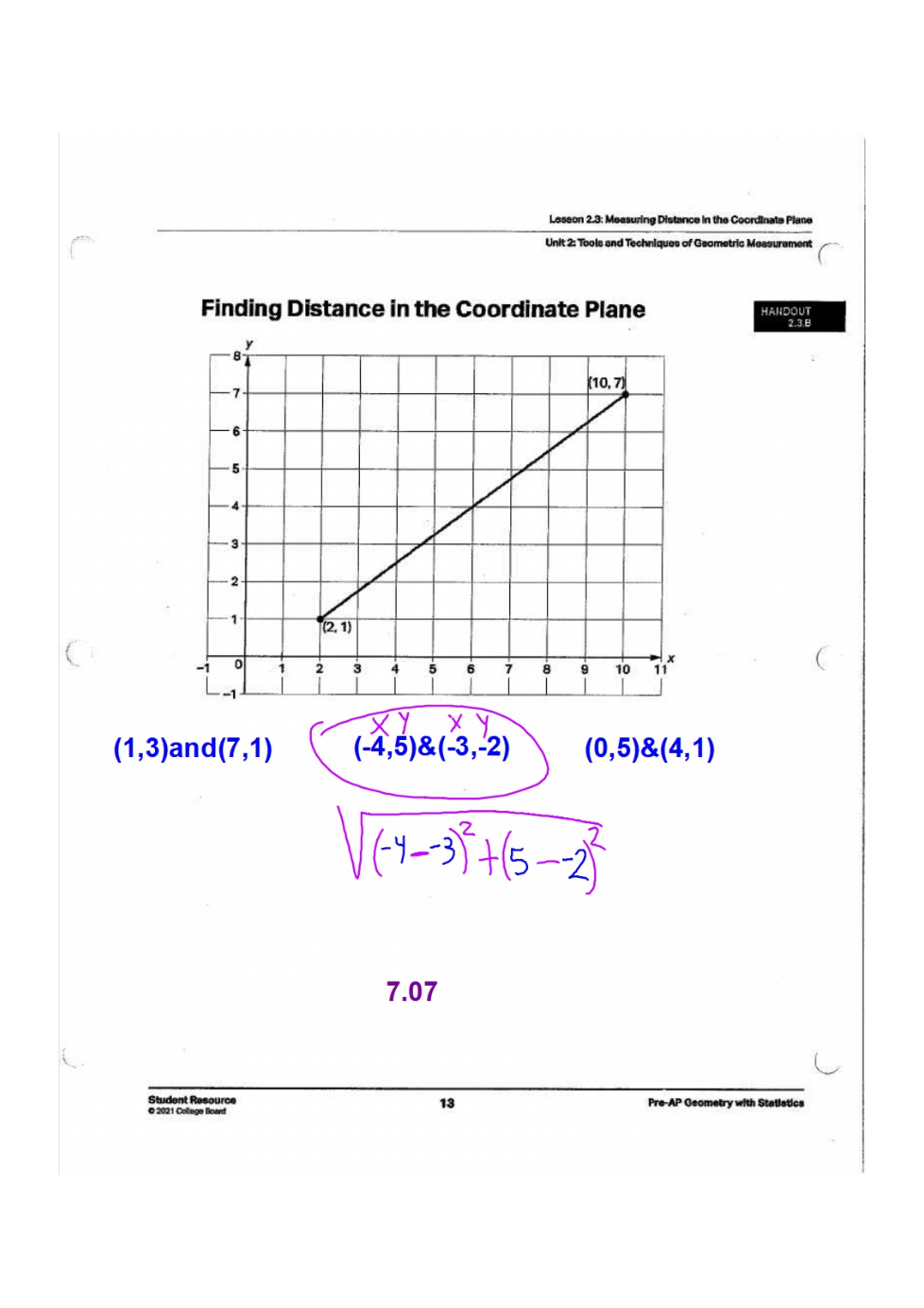 Lesson 2.3 Distance and Midpoint