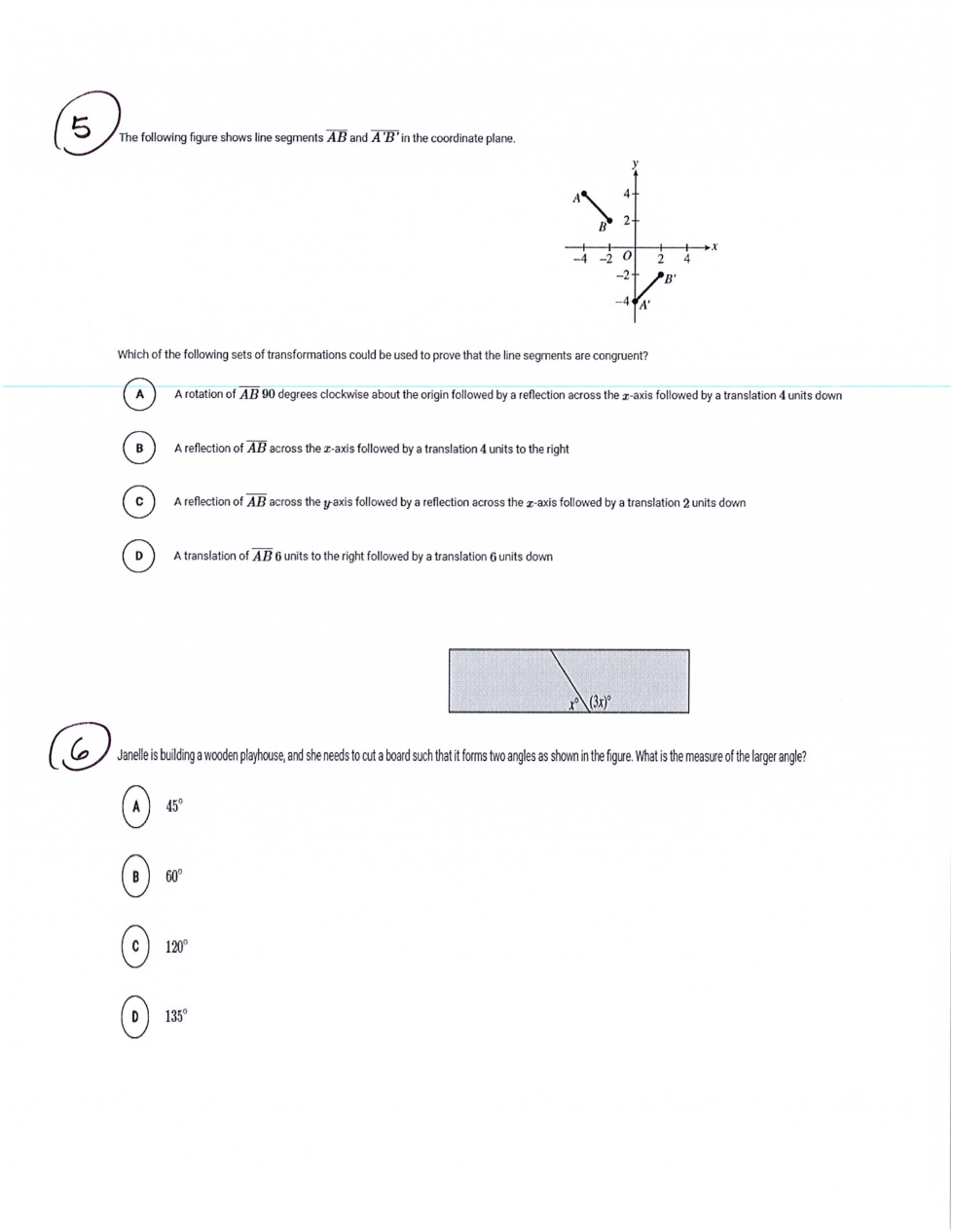 A rotation of AB 90 degrees clock wise about the origin followed by a reflections across the x axis followed by a translation 4 untis down