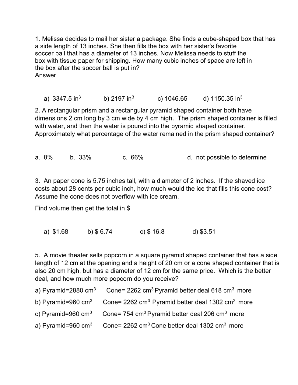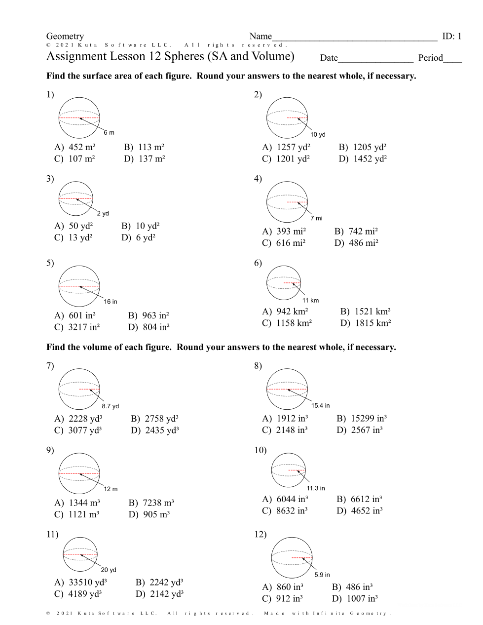 Lesson 4.3.1 / 2.3.2 Spheres Surface Area and Volume