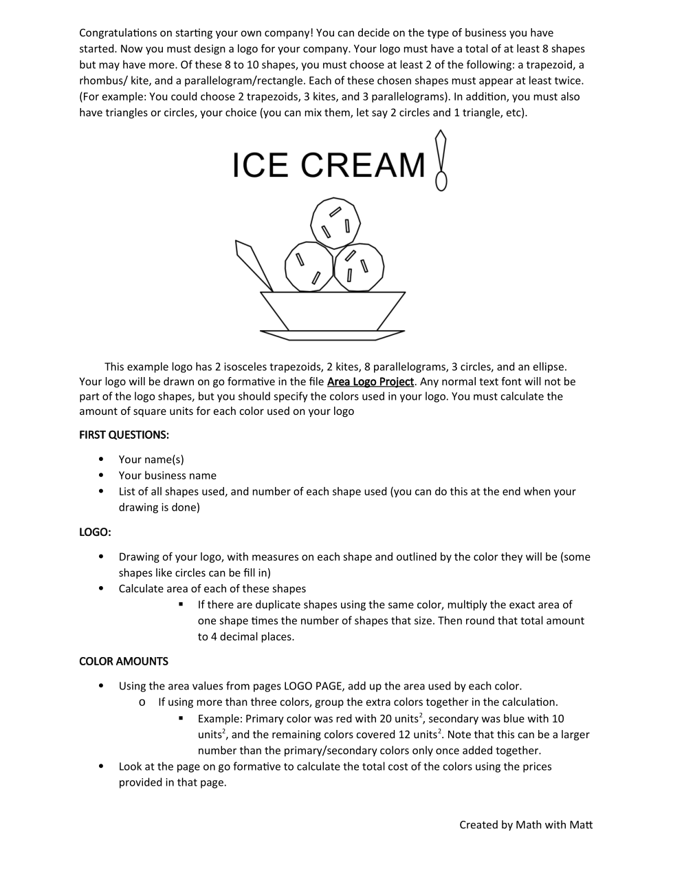 4. Drawing with color and measure and name of bussines 30 points (must be neat and legible)