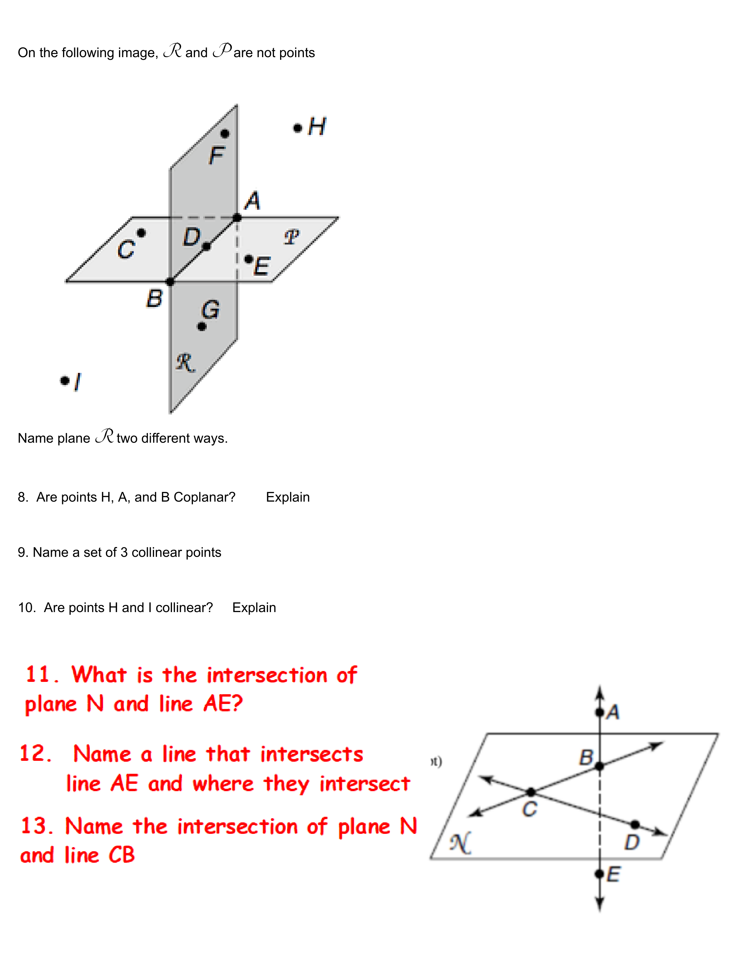 Planes are named with 3 non collinear points! (3 letters)ONLY 3 NAMES EXAMPLE BED, ###, ###