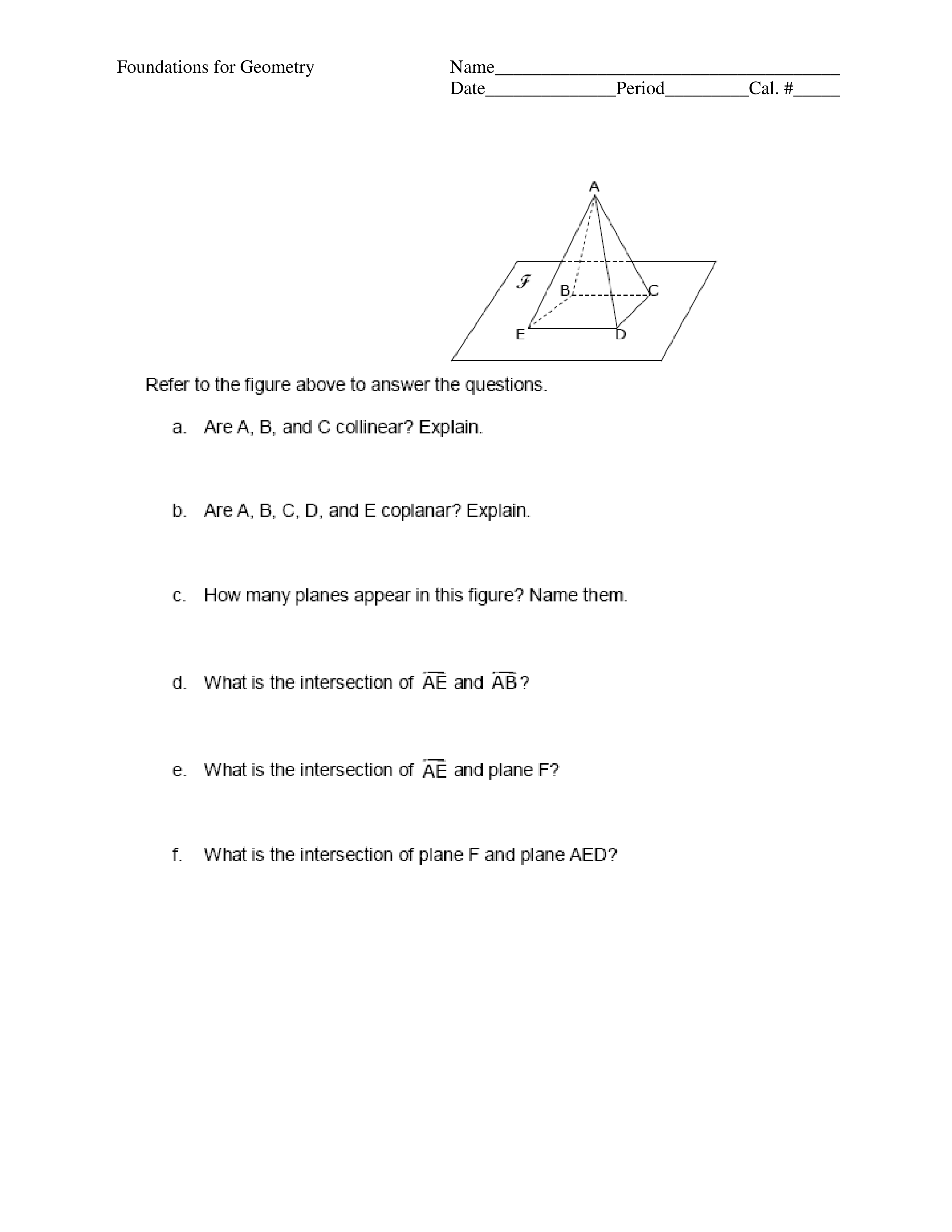 Plane F is the rectangle at the bottom and plane AED is one of the triangles forming that pyramid