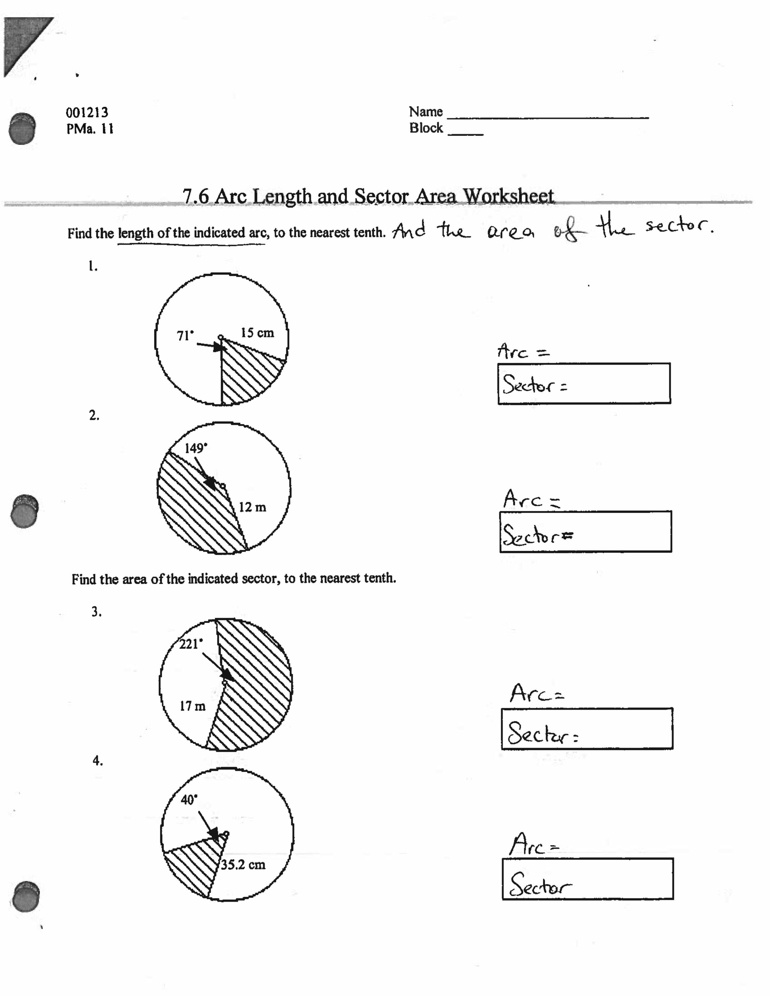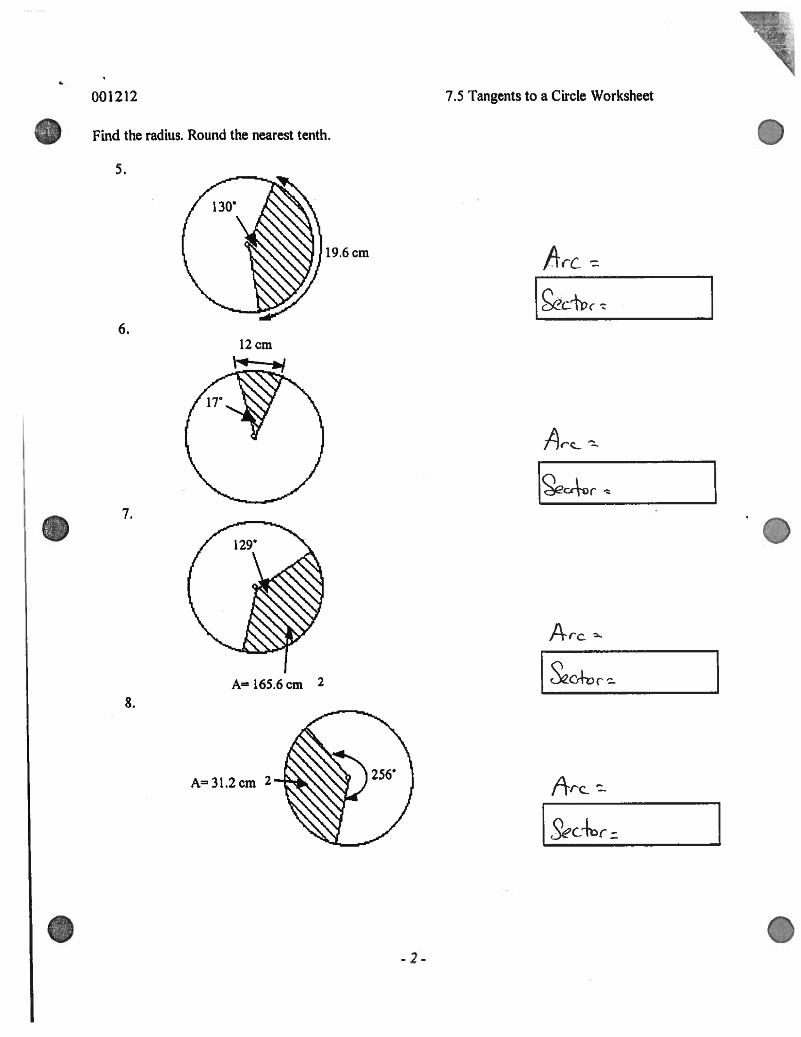 Arcs lengths and area of sectors ARS