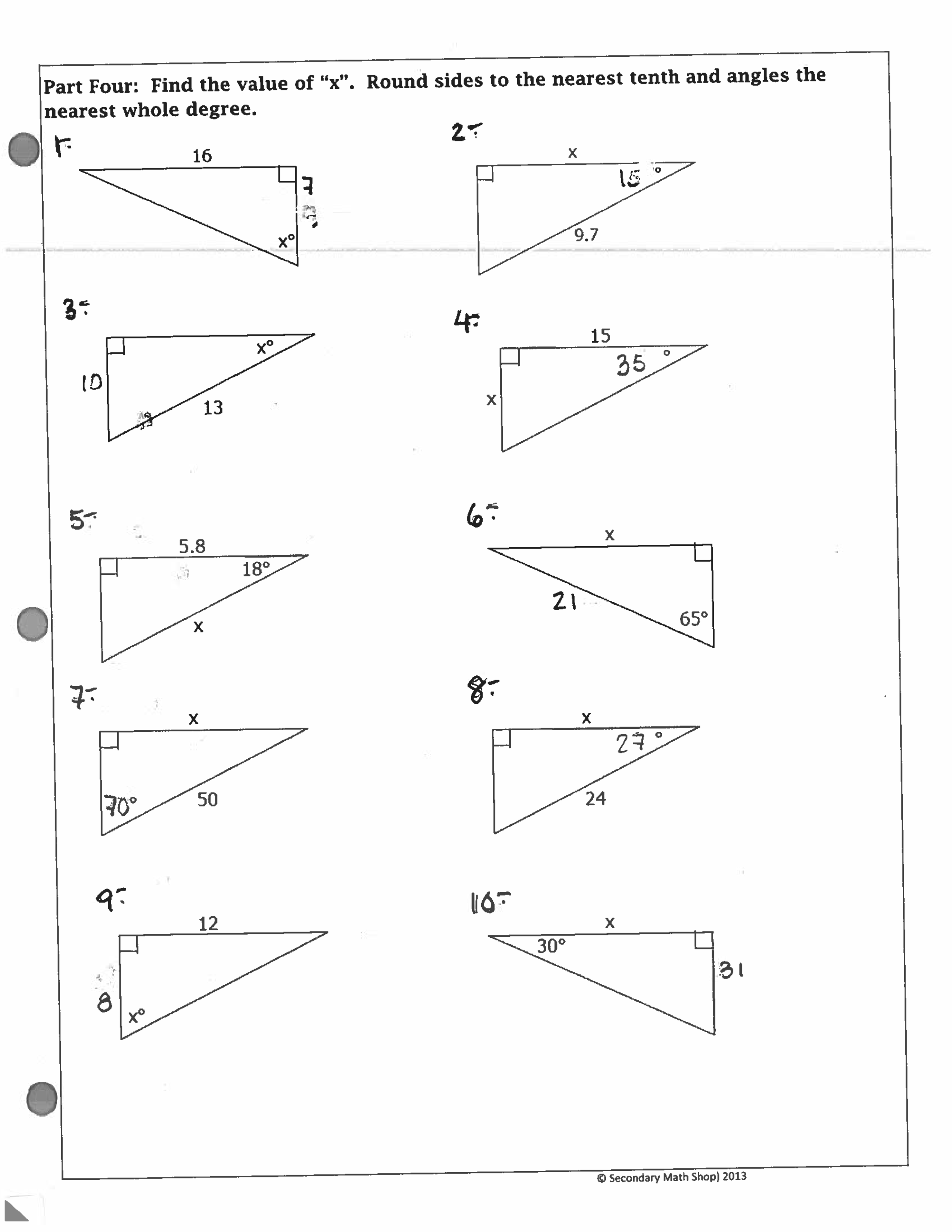 3r Nine Weeks Lesson 10-11 reivewTrigonometry Sides and angles