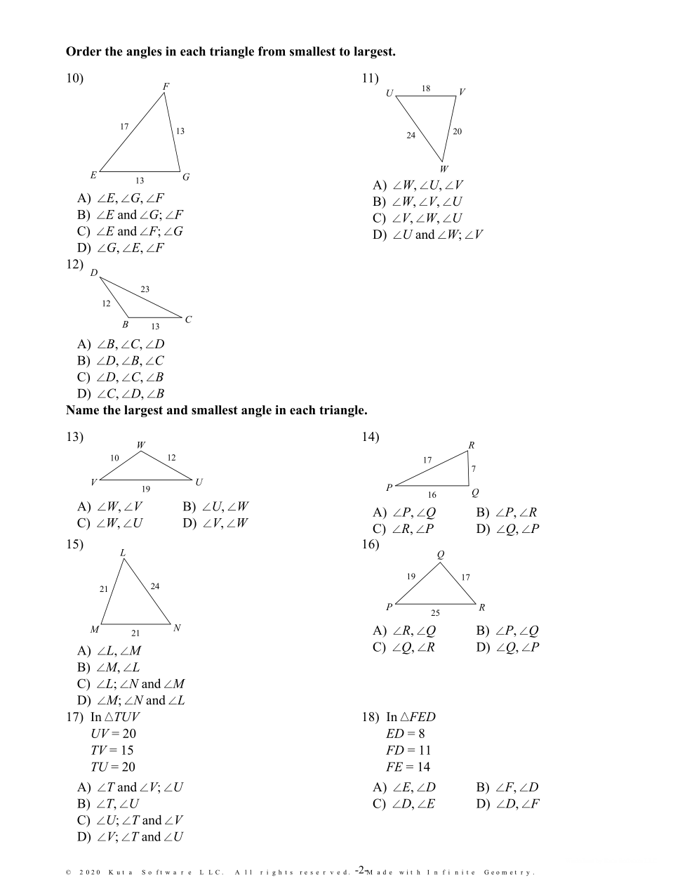 Find the ranges of x for a triangle with sides 9, 12 and 2x-7