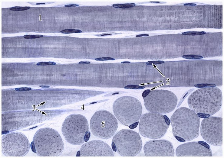 Якою ци фрою позначена м'язова тканина на зображенні?