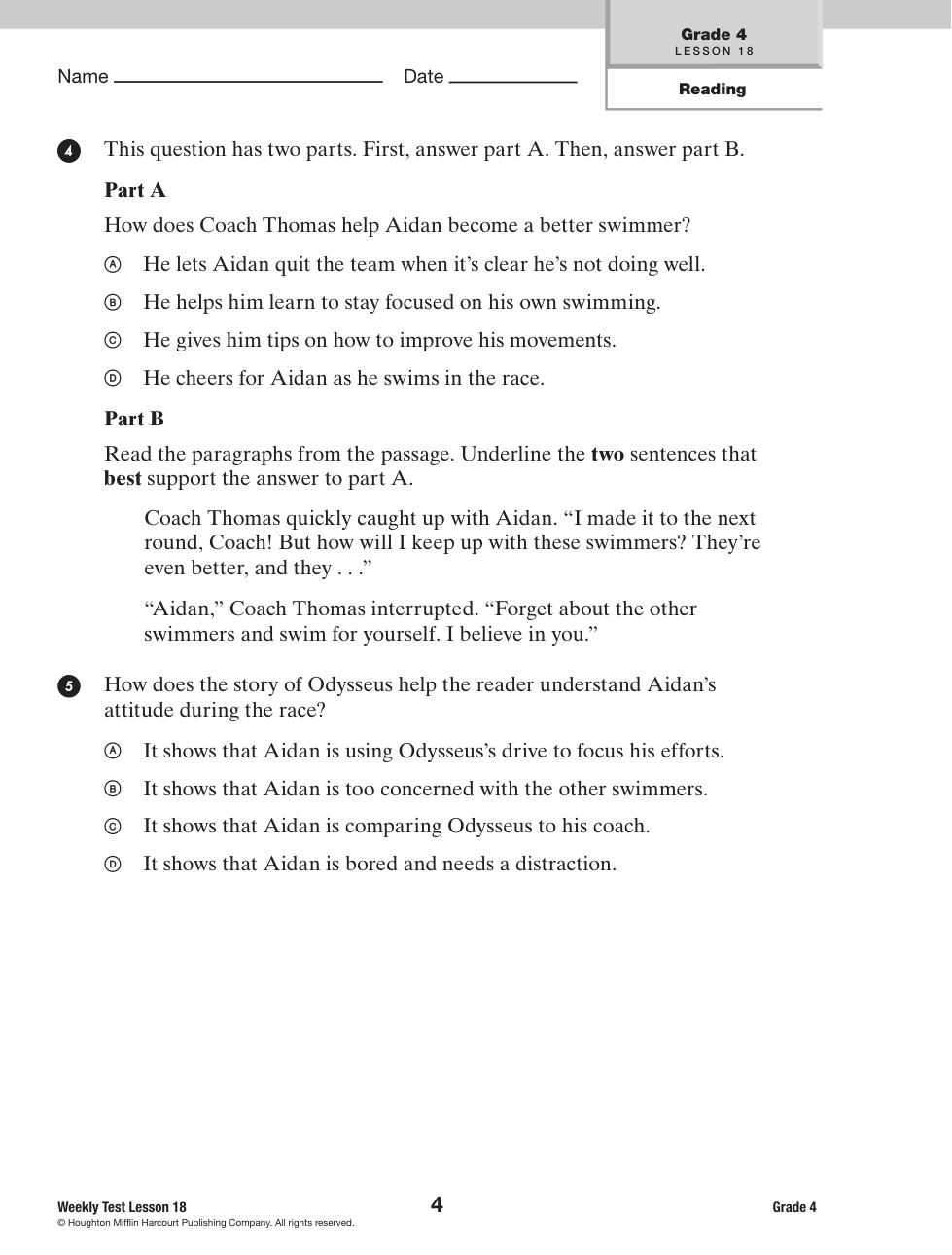 Part A How does Coach Thomas help Aidan become a better swimmer?