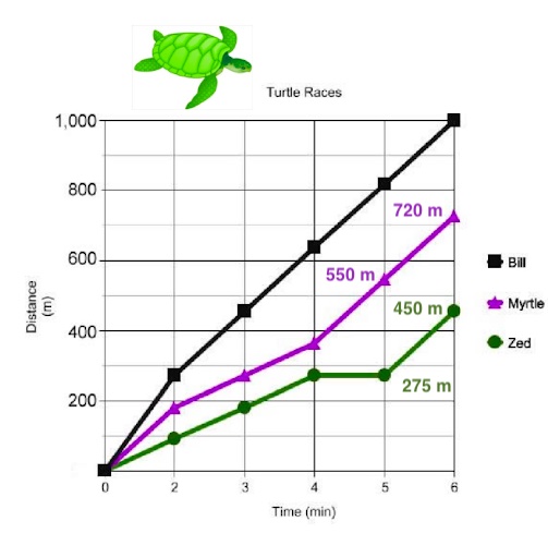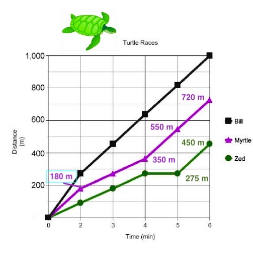 Which turtle had the quickest speed at the beginning (in the first 2 minutes) of the race?