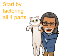 After factoring, we can cancel _______ from both numerator and denominator and our simplified answer is _______ .