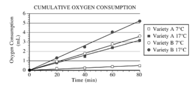 Variety A/Variety B, or temperature and the oxygen consumption. (One point).
