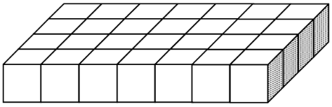 Fawn has an empty box in the shape of a rectangular prism. She will fill the box with cubes made of plastic. Each cube has a volume of 1 cubic centimeter. The base layer of cubes is shown.