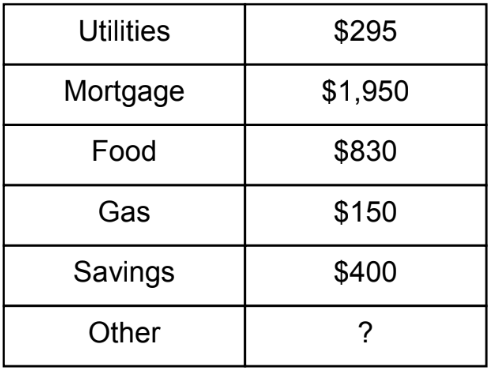 Mr. Carter’s net income last month was $3,765. The table shows the budget he created for the month.