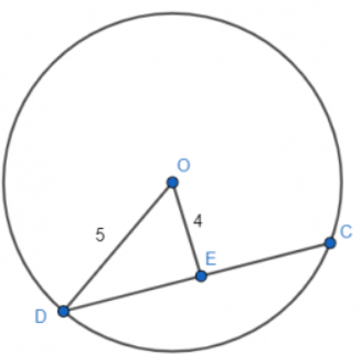 In the figure given below, O is the center of the circle with a radius of 5 cm. Find the length of chord DC if the perpendicular from the center is 4 cm in length?