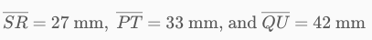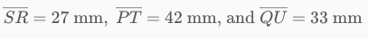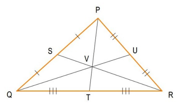 Solve for the lengths of each median of the triangle △QPR as shown in the given figure, if SV = 11mm, TV = 9 mm, and UV = 14 mm.
