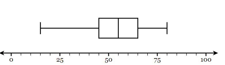The box-and-whisker plot shows the distribution of items sold at two different stores on a typical day.