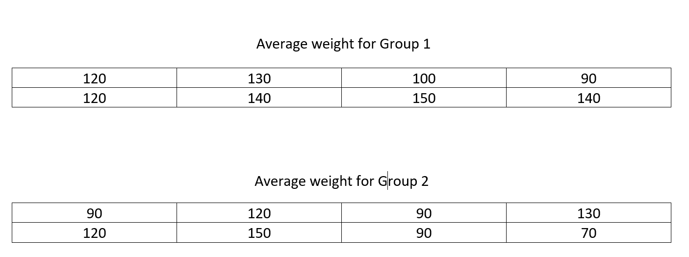 Two groups of Mr. Jones's cows were weighed in pounds. Below is the data. Round to the nearest hundredth if necessary.