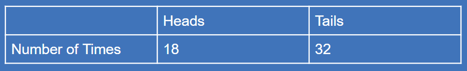 Harrison tossed a quarter 50 times. The results are shown above.Based on these results, what is the probability the next toss will land on heads? Enter your answer as a percentage.