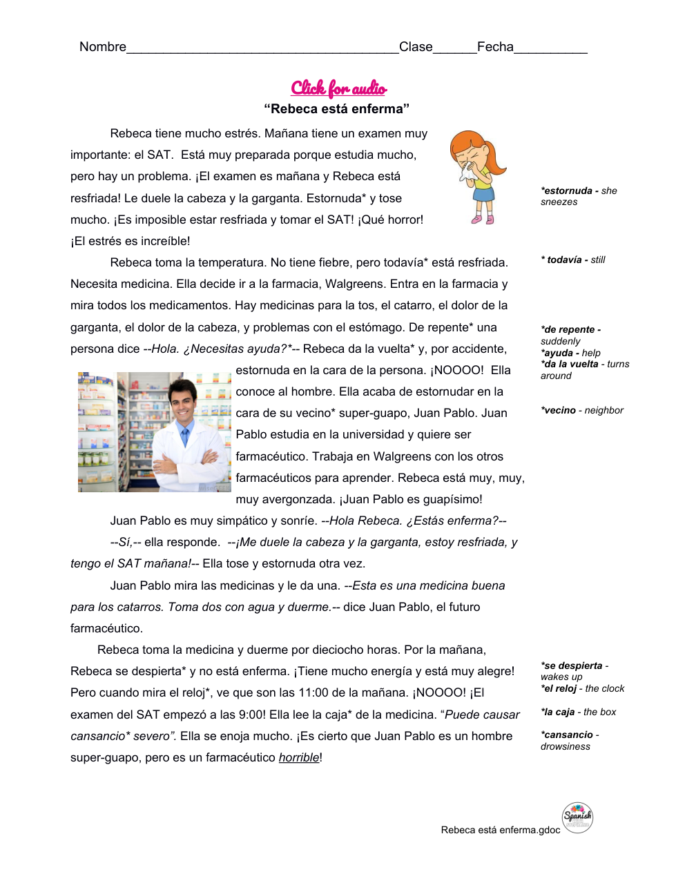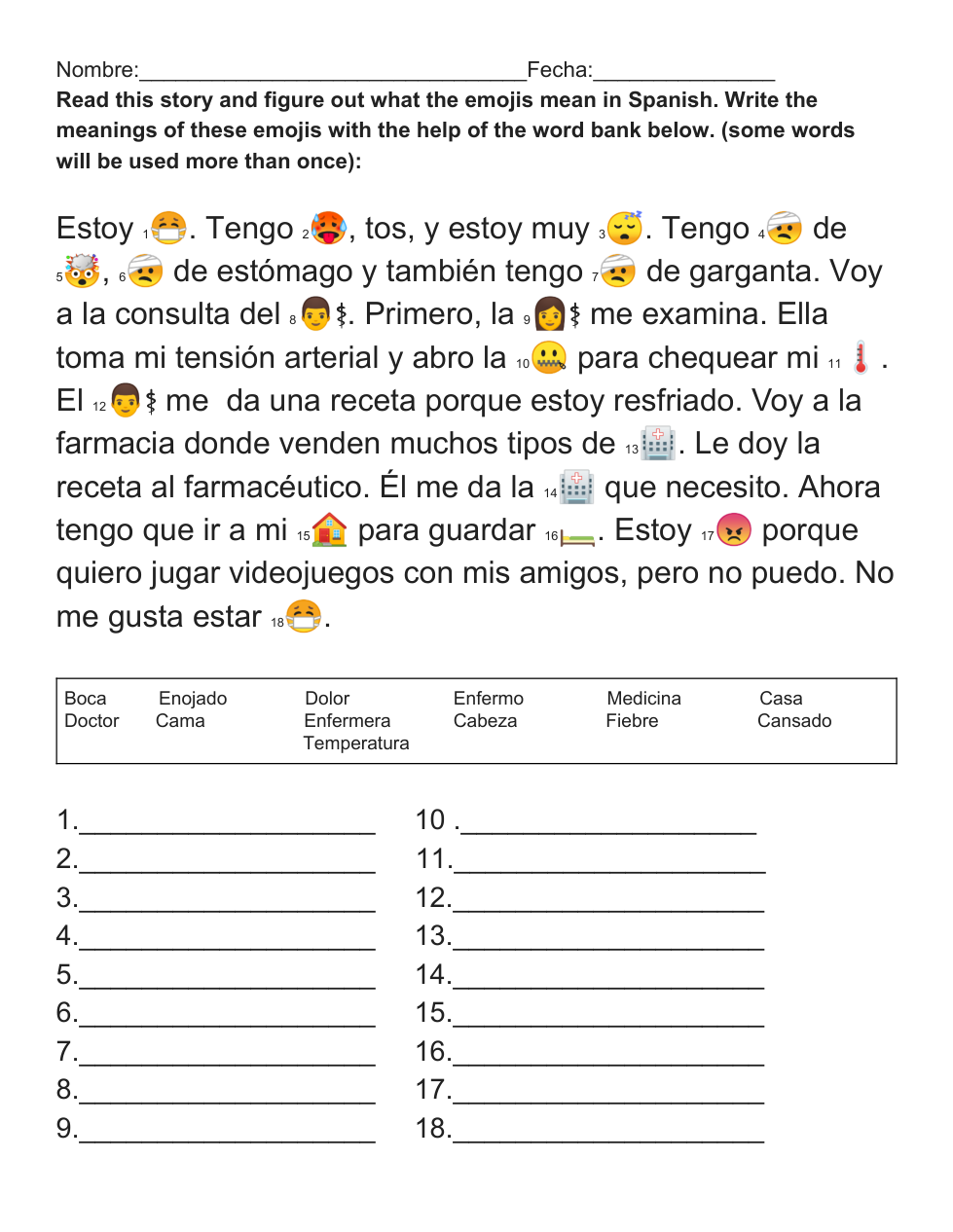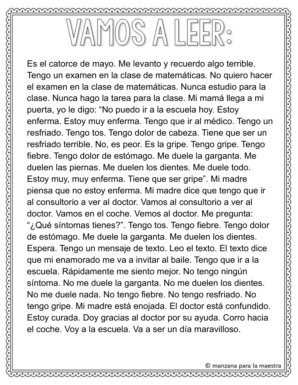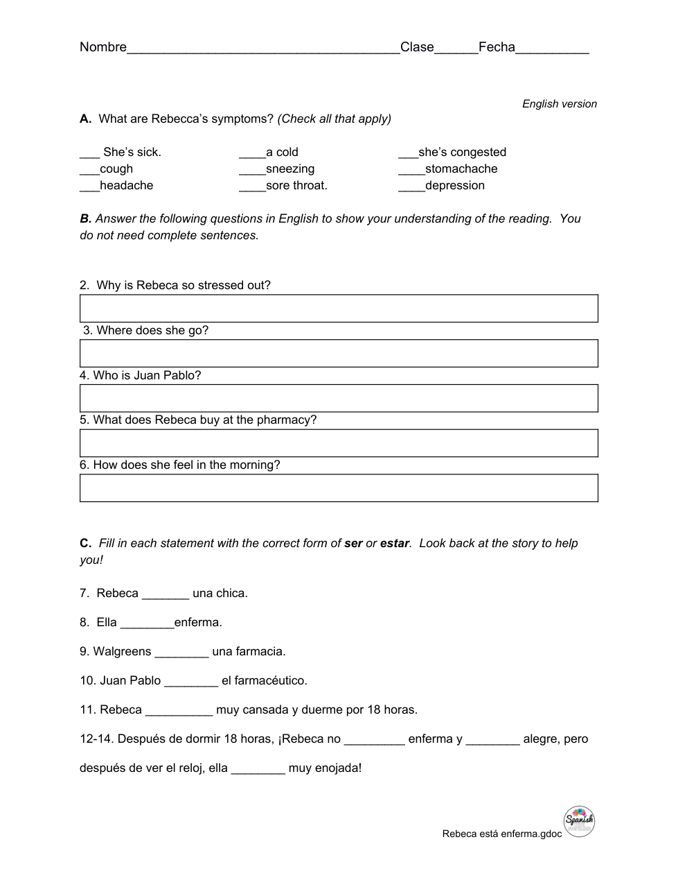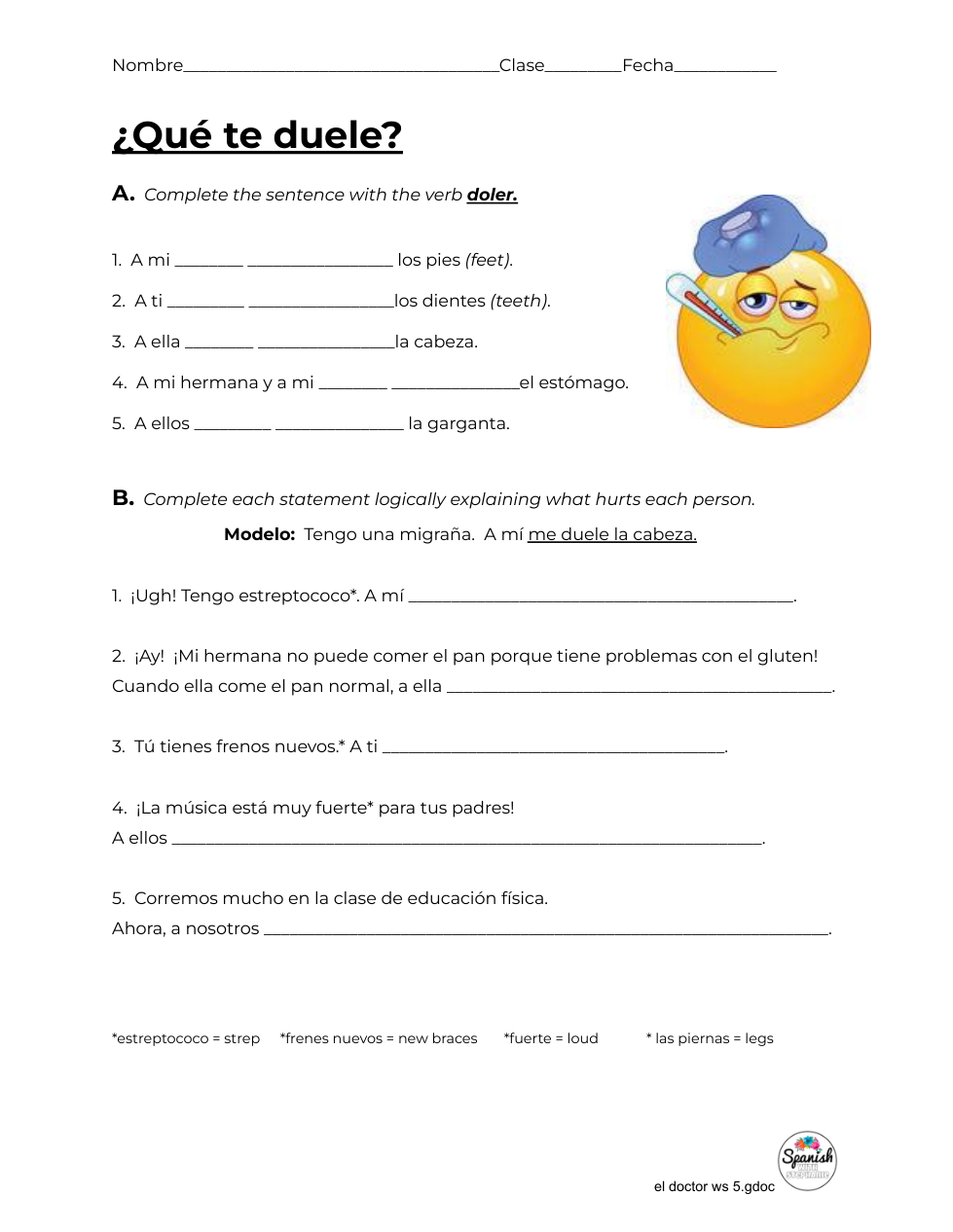 (I know you don't know what "barriga" means yet, but you can tell me what else is hurting him).