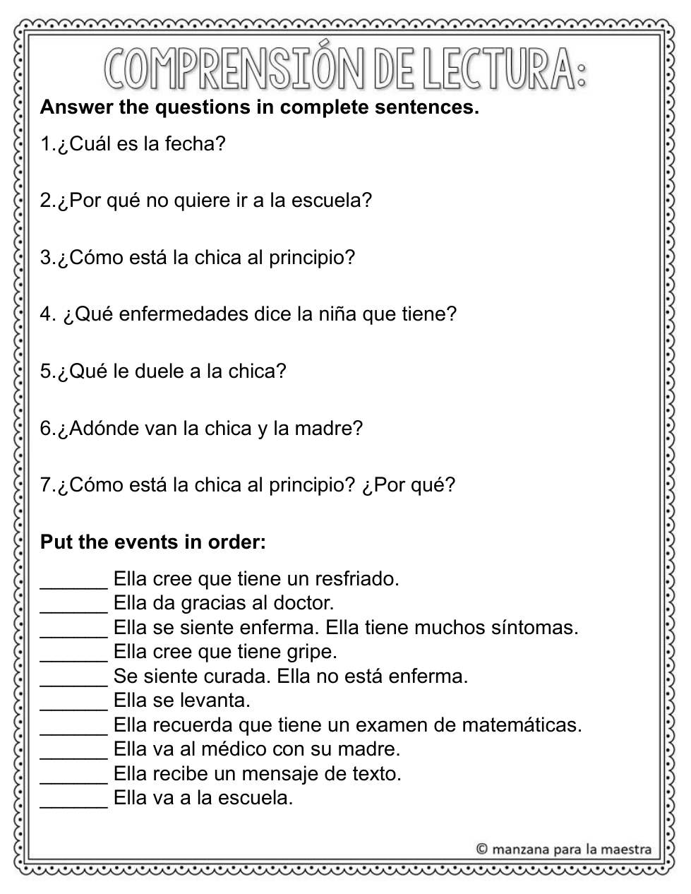 - Ella se sienta enferma. Ella tiene muchos sÃntomas.