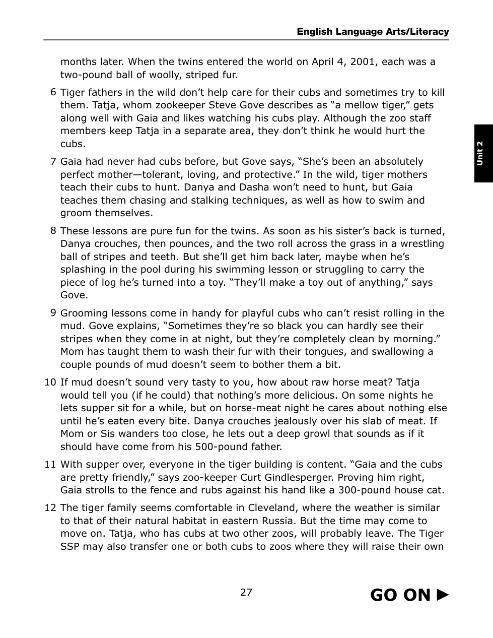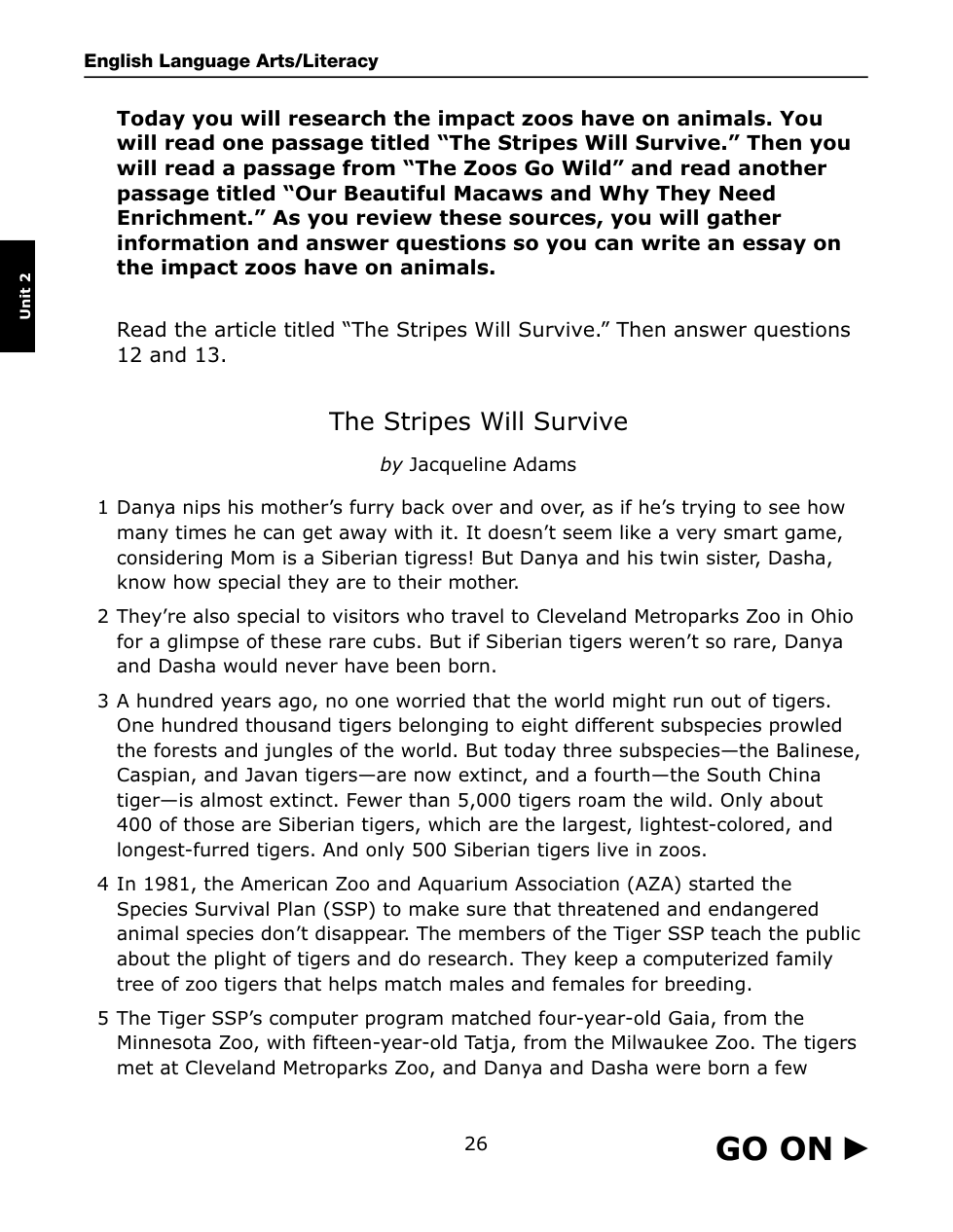 Refer to the article titled “The Stripes Will Survive” and the passage titled “The Zoos Go Wild.” Then answer the following question(s):