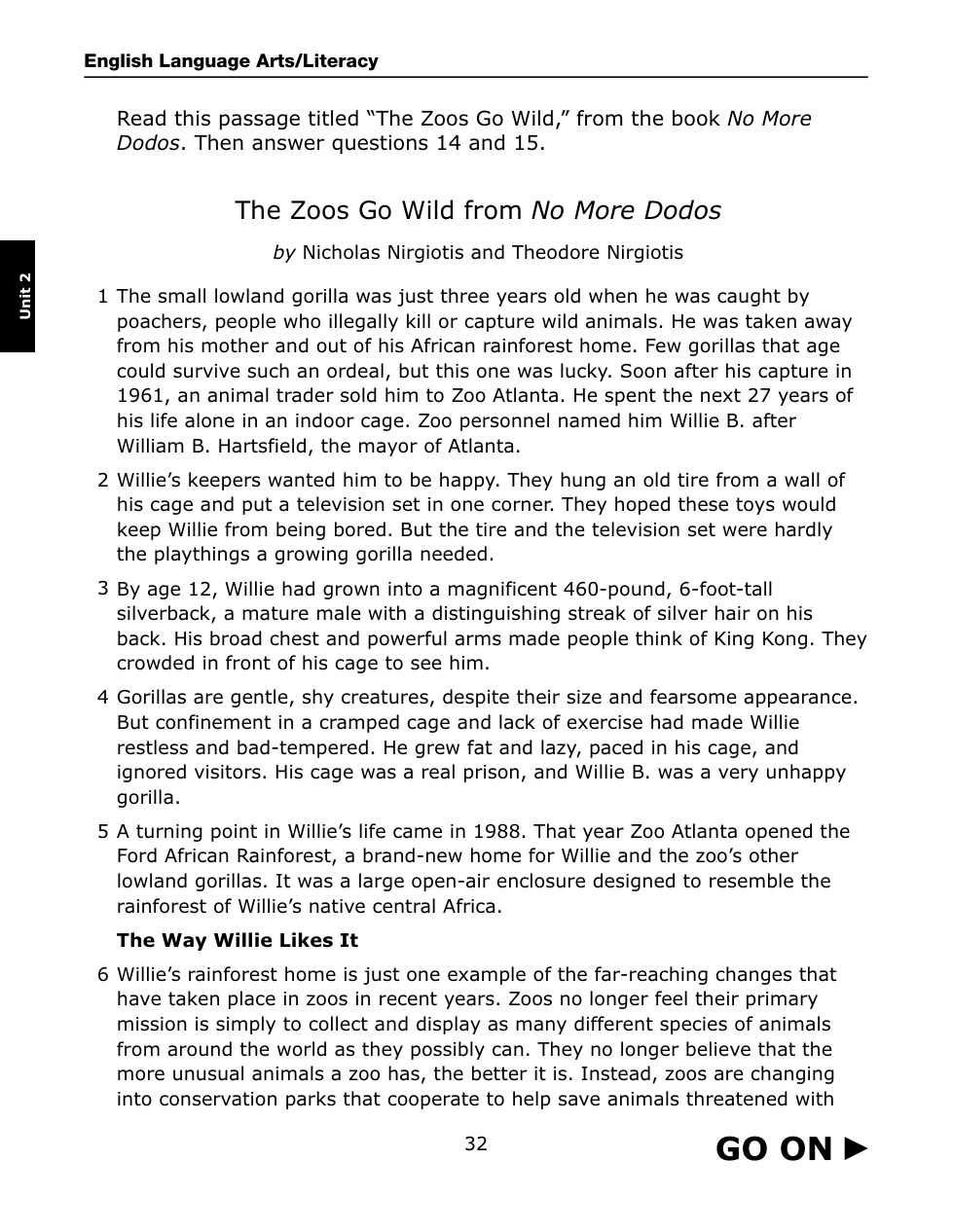 Part A Which detail from the passage “The Zoos Go Wild” supports the idea that Willie changed after being moved into his new home?