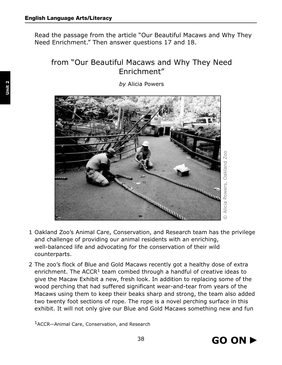 Refer to the article titled “The Stripes Will Survive” and the passage from the article “Our Beautiful Macaws and Why They Need Enrichment.” Then answer the following question(s)