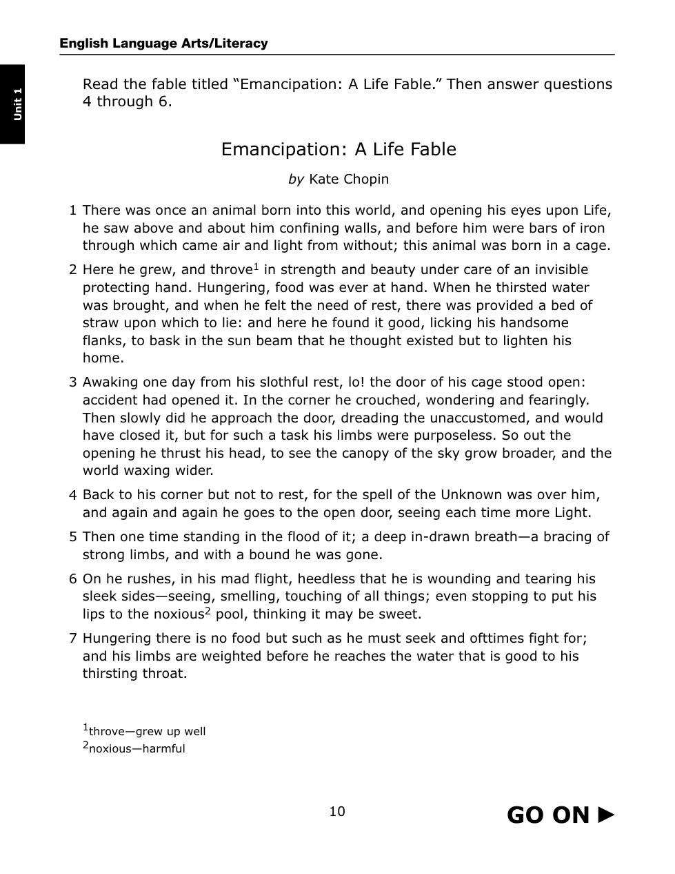 Part A Which statement expresses a theme in “Emancipation: A Life Fable”?
