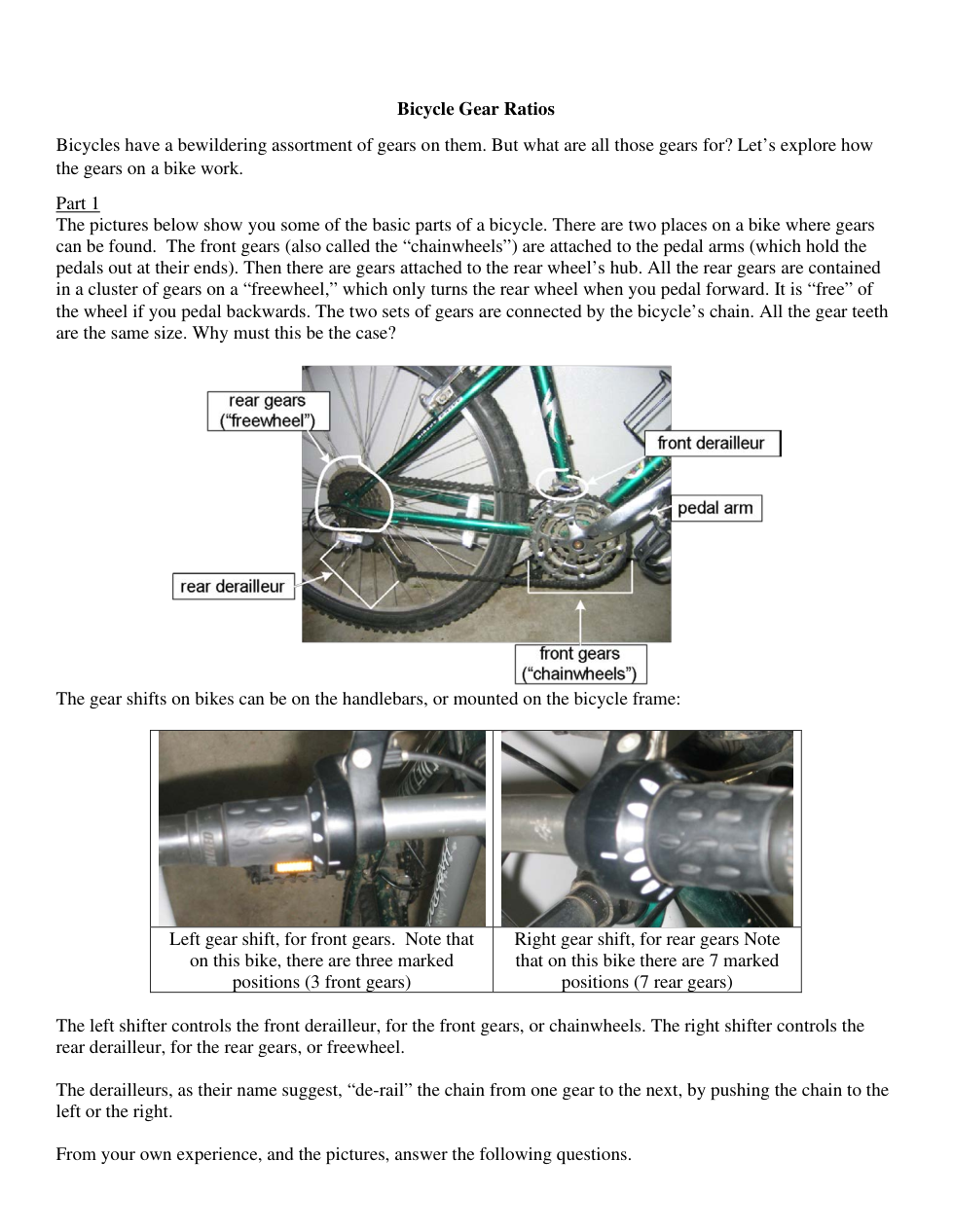 Each time a pedal goes all the way around, which gear set--the front or the rear--goes around once?