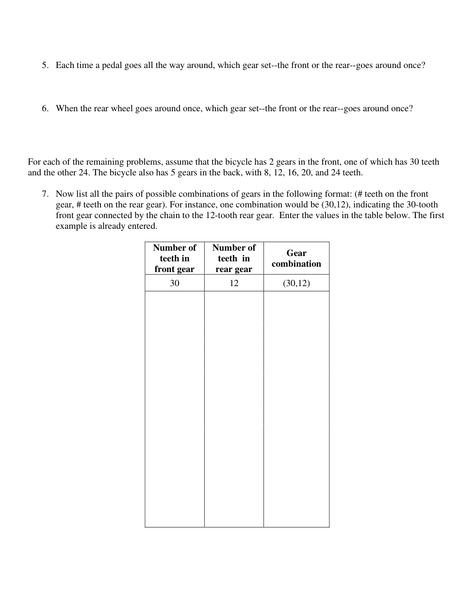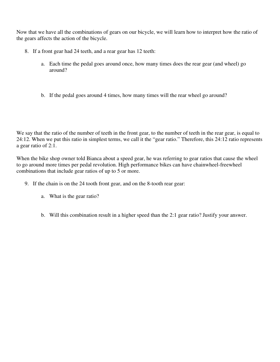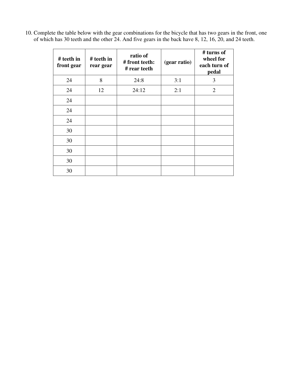 If a front gear had 24 teeth, and a rear gear has 12 teeth:
