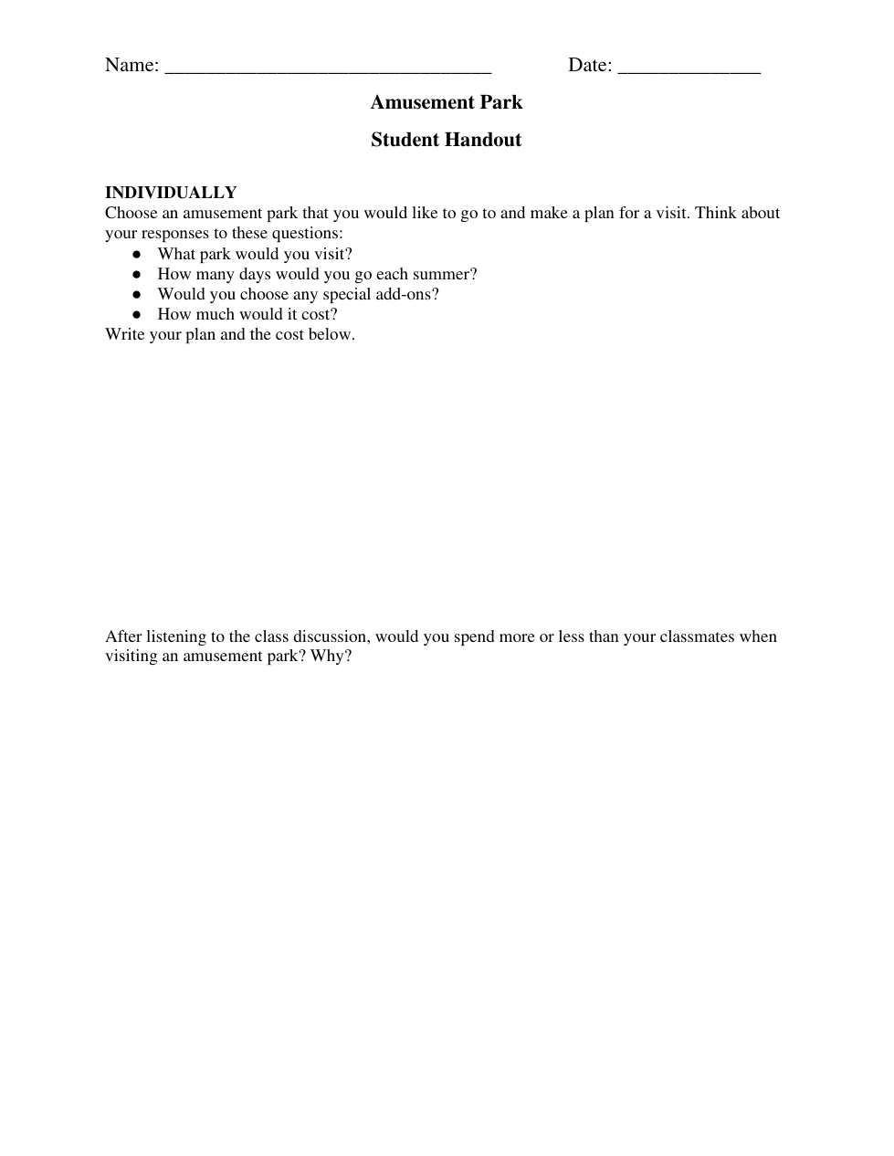 After listening to the class discussion, would you spend more or less than your classmates when visiting an amusement park? Why?
