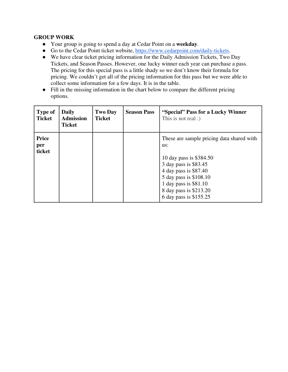 Compare your individual plans from the beginning of the lessons. Do you agree or disagree on the best type of ticket your partner chose in #2? Explain your reasoning.